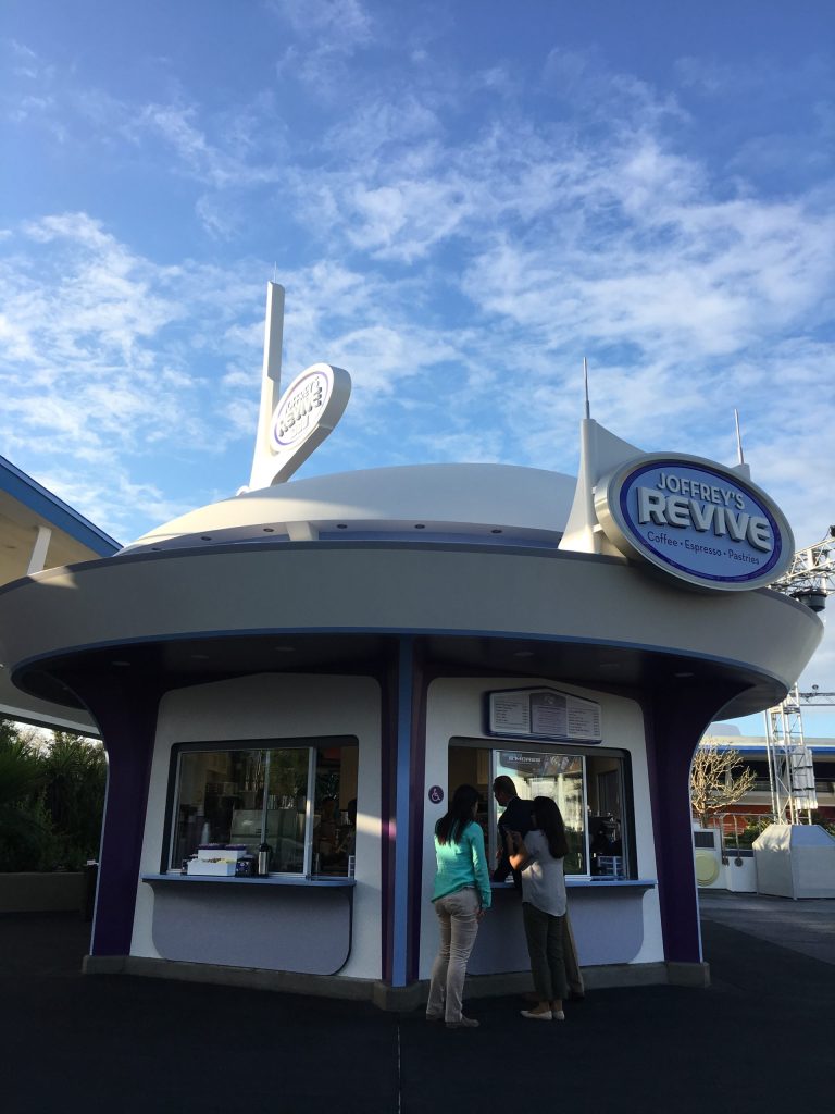 This project began the lands return to the opening day esthetic of Tomorrowland. Staging of the new build was key. For instance, on the guest approach to the kiosk, Space Mountain and the Tomorrowland Transit Authority act as a theatrical backdrop for the new marquee. The architecture was also built into the existing landscaping pad while maintaining an unobstructed guest pathway.