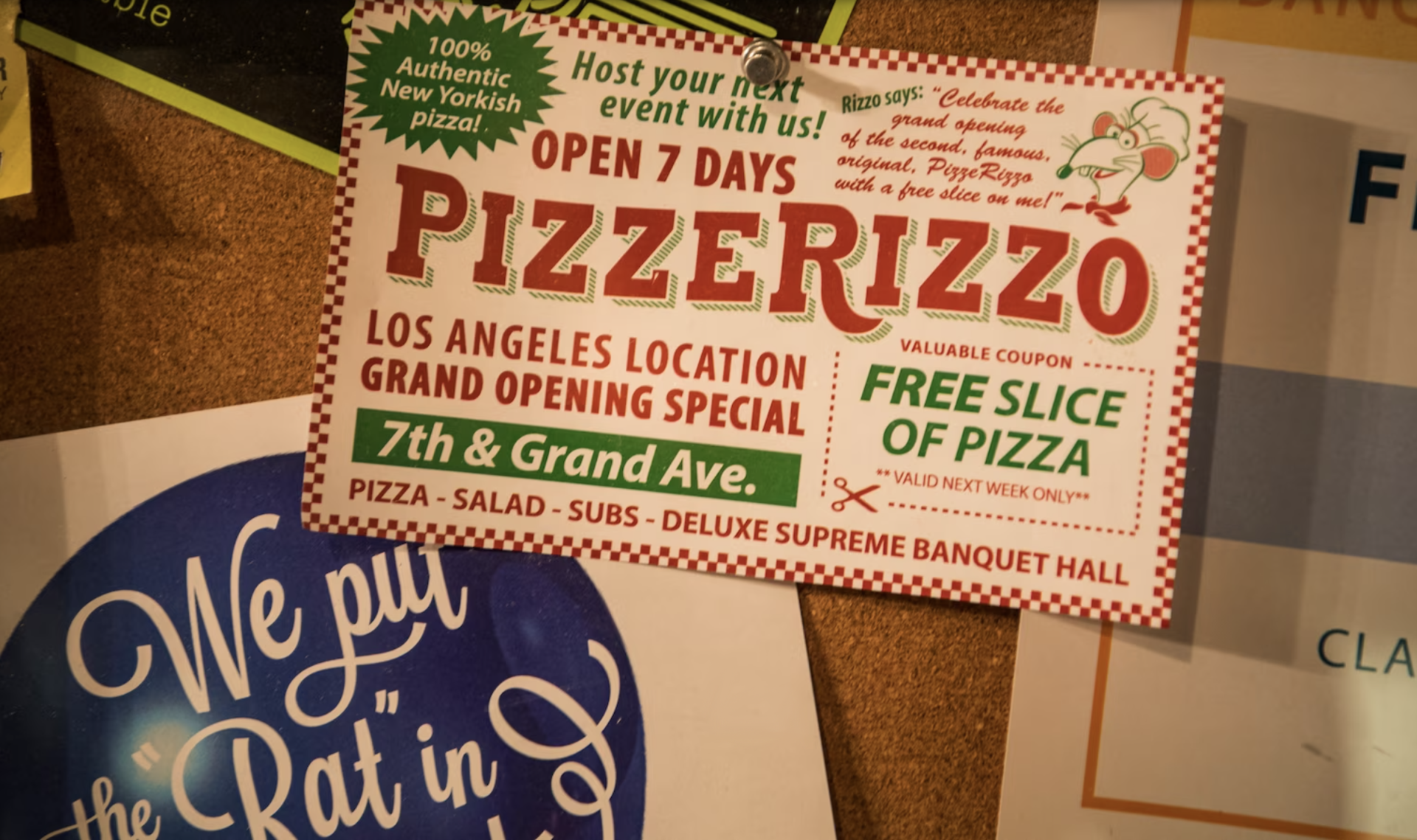 The addition of Toy Story Land too Disney’s Hollywood Studios allowed for the creation of a more Muppet-centric area complementing the beloved . As Concept Designer on this project, my scope included the theme design to the exterior and interior of the main counter service building. The story goes that Rizzo comes from a proud family of Italian immigrants who made their mark in New York City by creating a pizzeria empire. The Famous and Original PizzeRizzo’s would grow to establish a Second Famous and Original on Grand Avenue.
