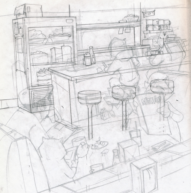 Sketchbook doodles and animation backgrounds.